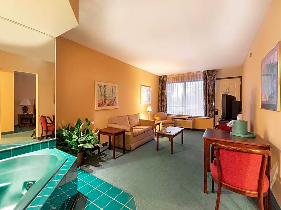 This suite's standout feature is the hot tub. Boasting a private entrance, this air-conditioned suite includes 1 living room, 1 separate bedroom and 1 bathroom with a bath and a shower. The suite offers a TV with cable channels, soundproof walls, a tea and coffee maker, a seating area as well as an inner courtyard view. The unit has 1 bed.